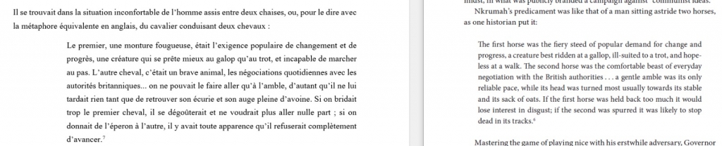 Autre phrase qui a fait écho à mon travail de l’année dernière sur Our Sister Killjoy : “This, indeed, mirrored the divisive politics of regionalism in much larger Nigeria nearby, whose north-south cleavage produced a devastating civil war in the 1960s.”